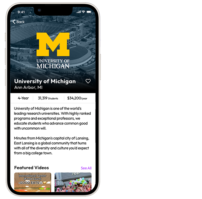 Create your institution's profile with videos from your student advocates to attract more qualified applicants.